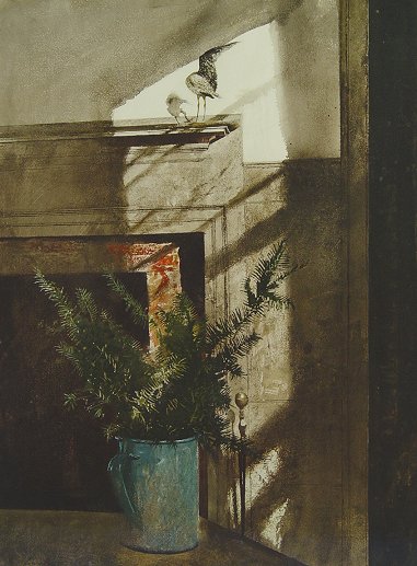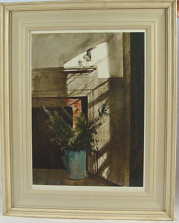 WYETH, Andrew Newell, (American, 1917-): ''Bird in the House'', Collotype, 27'' x 19 1/2'' sight size, pencil signed, numbered 61/300, Chime Gallery custom frame, 34 1/2'' x 29''. Certification verso.