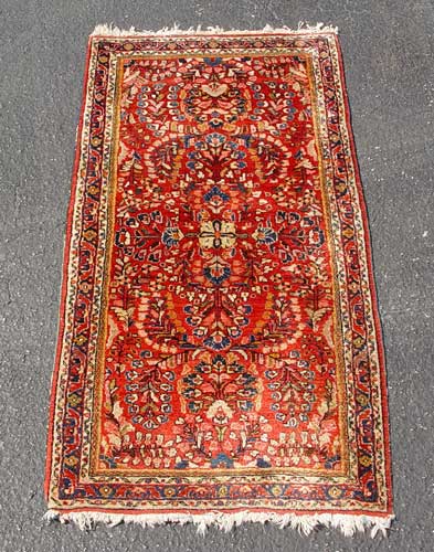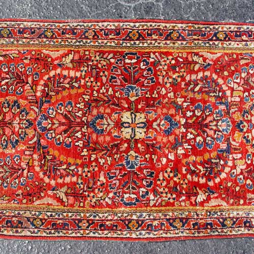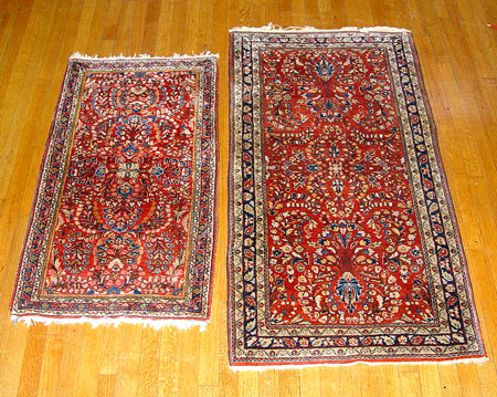 TWO SEMI ANTIQUE SAROUK RUGS: One a bit larger than the other, 4' 11'' x 2' 5 1/2'', and 3' 11'' x 2' 1''