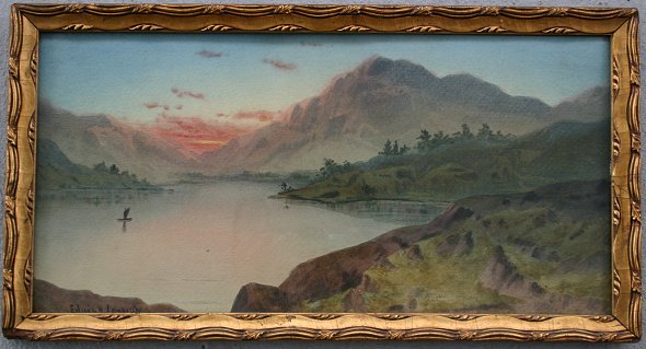 LANKESTER, Edwin H., (American, 1958-): Mountain valley landscape, W/C, 8'' x 16'', signed lower left, encased in period worn gilded gesso molding, 9 1/8'' x 17 1/8''.