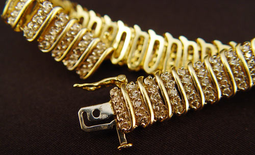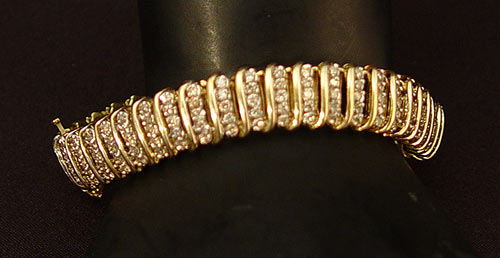 DIAMOND AND GOLD BRACELET: 10K yellow gold set with 225 round cut diamonds. 3/4'' wide, 7 1/2'' long. 23.8 gr.