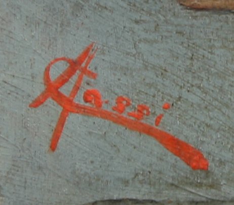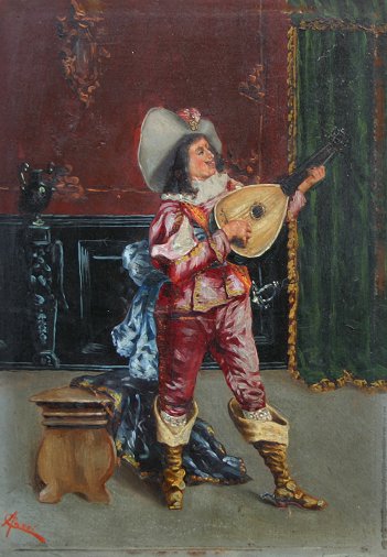ITALIAN OIL/B OF A MANDOLIN PLAYER: Circa 1900, 7 3/4'' x 5 1/2'', illegibly signed, gold frame 10'' x 8''.