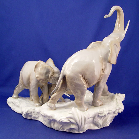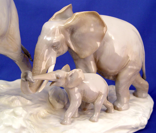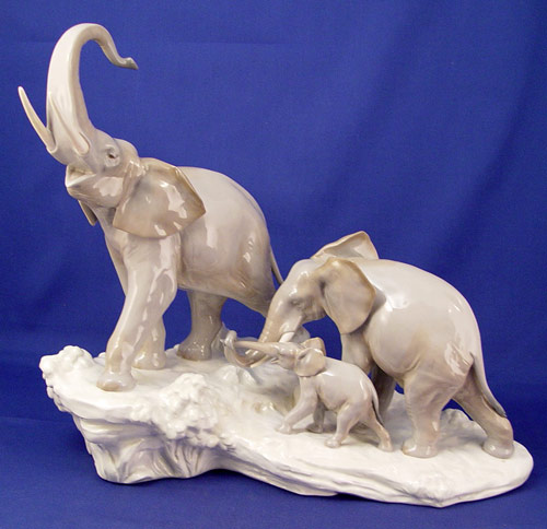 LLADRO PORCELAIN ''ELEPHANTS WALKING'' FIGURAL GROUP 1150: Noble trio of elephants, 14'' x 16''.