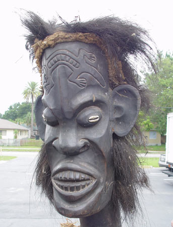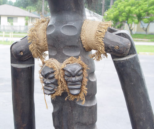 OVER 8 FT TALL AFRICAN TRIBAL CARVED FIGURE: 8' 3'' tall statue carved from wood. Breaks down for transport.