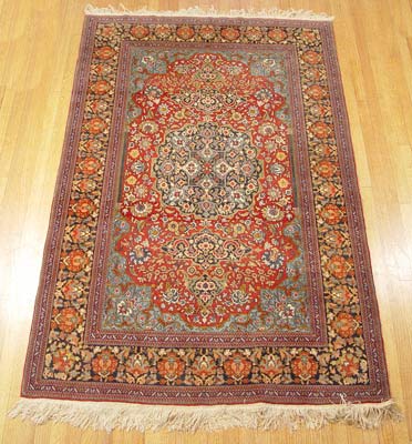 FINE SEMI ANTIQUE PAKISTANI CARPET: Approx. 7' 2'' x 4' 6''. Very tightly woven, fine quality.