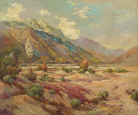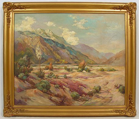 YOUNG, Florence Upson, (American, 1872-1974): ''The Edge of the Desert'', Oil/C, 25'' x 30'', signed, period impressionist gilded and carved frame, 31'' x 36''. Cracklure throughout, needs cleaning.