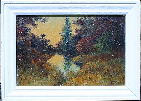 LOW, Gilman, (American, 20th C): Landscape with Sunrise, Oil/B, 8'' x 12'', signed and illegibly dated, framed, 10 1/2'' x 14 1/2''. Several paint flecks.