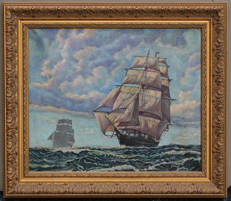 GUILLERY, Gilbert, (American, 1906-?): Maritime scene with Ships at Sea, Oil/C, 20'' x 24'', signed, framed, 26'' x 30''.