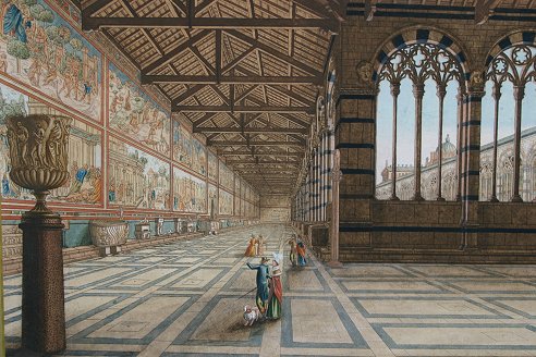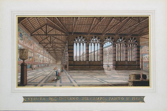19TH C ITALIAN ENHANCED PRINT ''VEDUTA DEL INTERNO DEL CAMPO SANTO DI PISA''