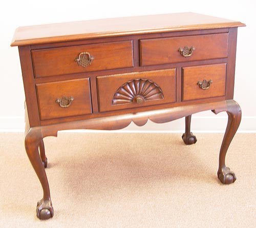 MAHOGANY QUEEN ANNE STYLE LOWBOY CHEST: 2 drawers over 3 drawers with shell carving to center. 29 1/2'' x 36'' x 20''. Early 20th C.