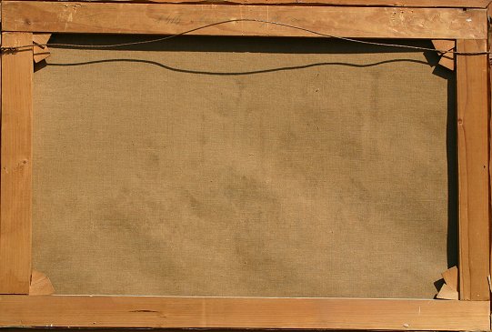 19TH C ORIENTALIST PAINTING OF CARAVAN LEAVING THE OASIS: Oil/Canvas, 20'' x 30'', signed C. Meron, encased in carved and gilded frame with wear, 26'' x 36''.