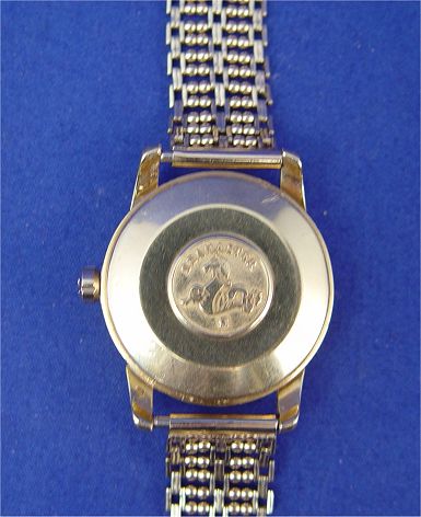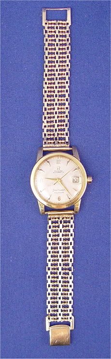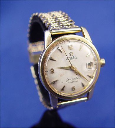MEN'S 18K OMEGA AUTOMATIC SEAMASTER CALENDAR WATCH: #16522256, replaced automatic movement, case #2849 SC. Currently on a 14k yellow gold mesh bracelet, 8 1/8''l.