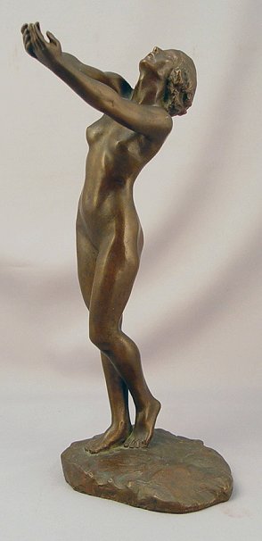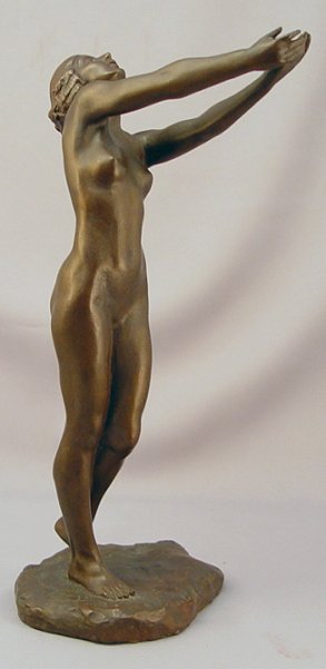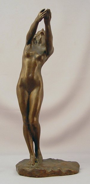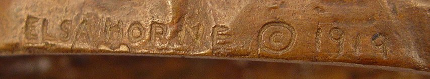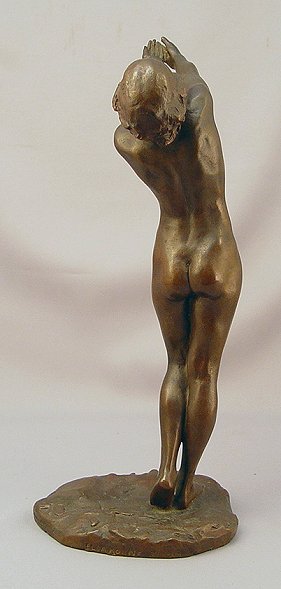 HORNE, Elsa, (American, 19/20th C): Female Nude, Bronze, signed, dated 1919, Gorham Foundry marks, 12'' tall, 5 1/4'' wide, 4'' deep.