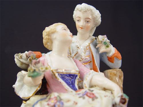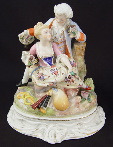 OLD PARIS PORCELAIN FIGURAL GROUP: Courting couple, 9'' high x 8 1/4'' base.