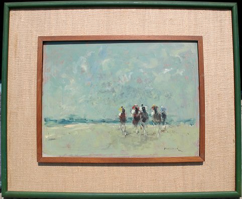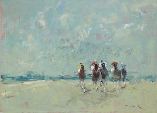 HORWOOD, Charles, (British, 20th C.): Horses Running on a Beach, Oil/Masonite, 12'' x 16'', signed, custom frame, 21'' x 25''.