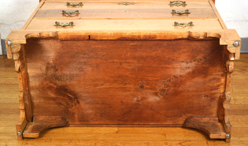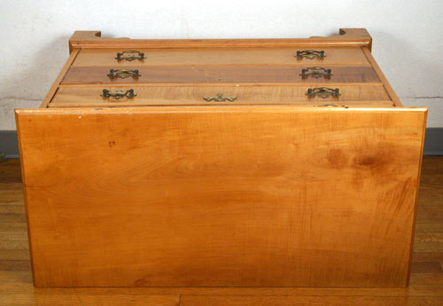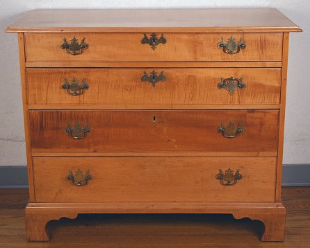 19TH CENTURY CHIPPENDALE TIGER MAPLE CHEST: 4 drawers, graduated in size. Bracket feet. Dovetail construction, panel back. 31'' high x 39'' wide x 19 1/2'' deep.