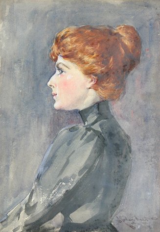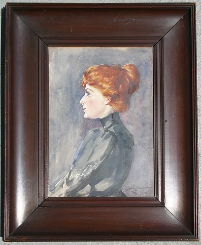 HUNT, Edmund Aubrey, (American, 1855-1922): Portrait of a Young Redheaded Woman, Watercolor, sight size 11'' x 8'', signed, encased in period frame with some separation, 17 1/2'' x 13 1/2'', descended through the artist's family.