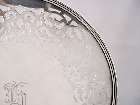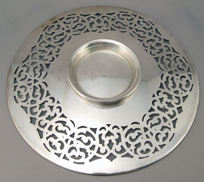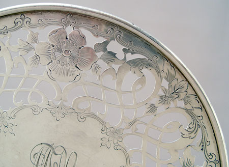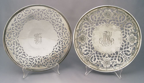 2 RETICULATED STERLING PLATES BY GORHAM AND BLACK STARR & FROST: To include 1) 1910 Gorham reticulated monogrammed plate on base. 9 7/8'' in dia. 1) Black Starr & Forest New York openwork monogrammed plate on base. Approx. 20.2 troy oz.