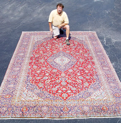 HAND TIED ROOM SIZE PERSIAN CARPET: Approx. 13'5'' x 9' Red ground with central medallion.