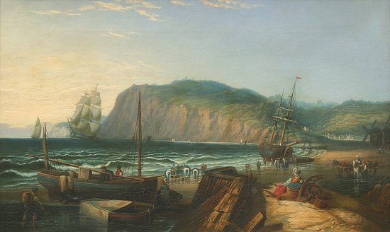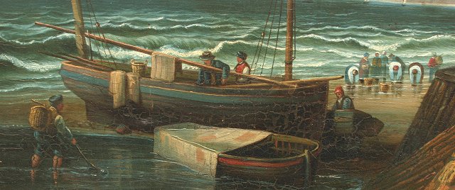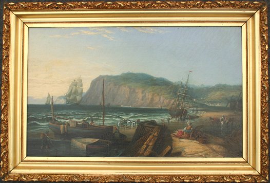 WEBBER, Wesley Elbridge, attribution, (American, 1841-1914): Oil/C, 15'' x 24'', monogrammed W.W., inscription in pencil verso reads M.W.F. Wilson, faintly titled, ''MURRAY BAY (La Malbaie), RIVER ST. LAWRENCE'', period gilded frame, 20'' x 29''. Some cracklure in lower portion, needs cleaning, small spot of inpaint.