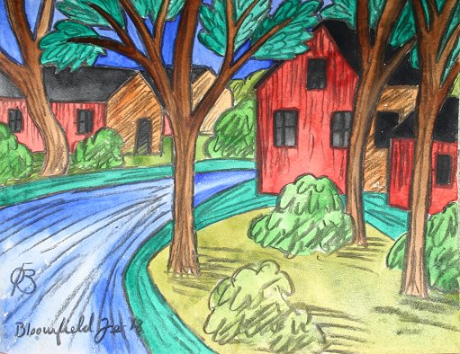 BLUEMNER, Oscar Florianus, (American, 1867-1938): Bloomfield Town scape with River, Watercolor and Graphite, 7 1/4'' x 9'', monogrammed, titled and dated February 18, unframed.