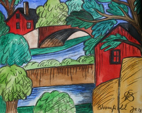 BLUEMNER, Oscar Florianus, (American, 1867-1938): Bloomfield Town Scape with Bridge, Water color and Graphite, 7 1/4'' x 9'', monogrammed, titled and dated February 18.