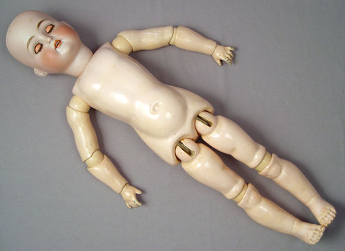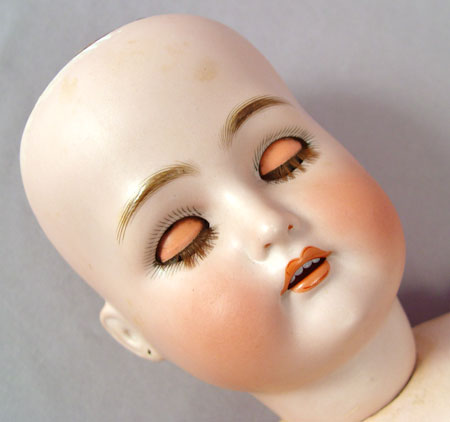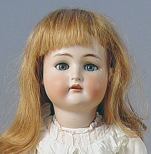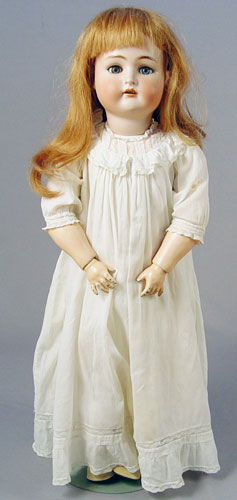 30'' TALL KAMMER & REINHARDT SIMON & HALBIG BISQUE HEAD DOLL: Marked K*R and Simon & Halbig. Sleepy eyes with lashes, rosy cheeks, open mouth showing teeth, pierced ears. The later wig is human hair. fully jointed body, 30'' tall.