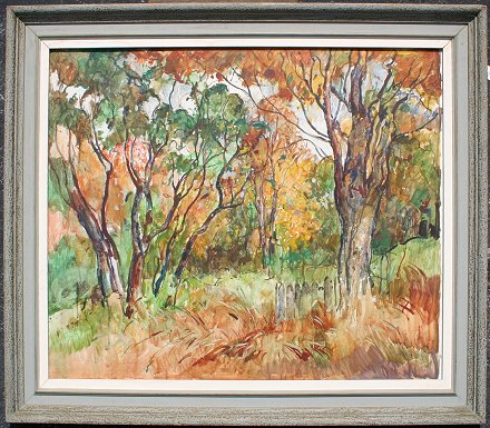STEVENS, William Lester, (American, 1888-1969): ''View from Kitchen Window'', Oil/Masonite, 30'' x 36'', signed and titled verso, barn wood frame with wear, 32 1/2'' x 37''.