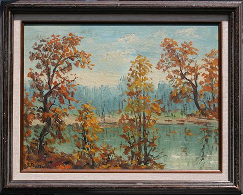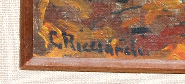 RICCIARDI, Caesare, (American, 1892-1988): Autumn Lakeside Scene, Oil/Canvas Board, 12'' x 16'', signed, original wood frame, 15'' x 19''.