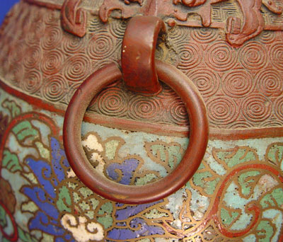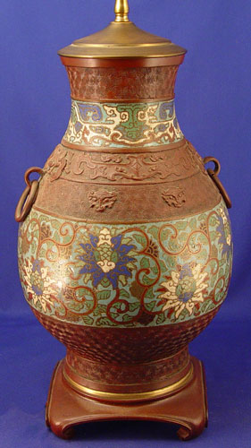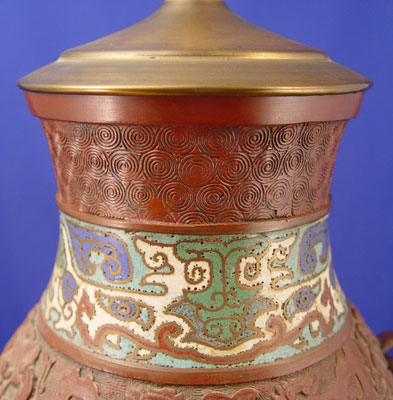 CHINESE CHAMPLEVE LAMP: Lamp is 29'' high overall, 14'' high champleve.