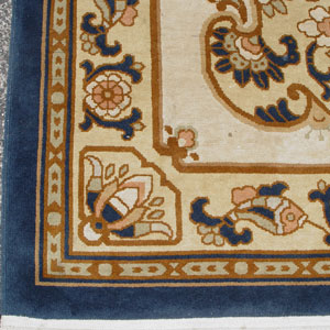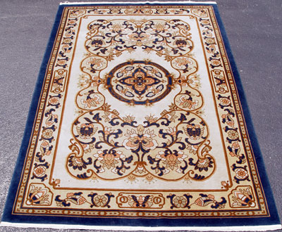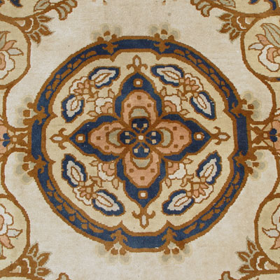 HAND TIED CHINESE CARPET: Shades of brown with circle medallion. Approx. 9' x 6'