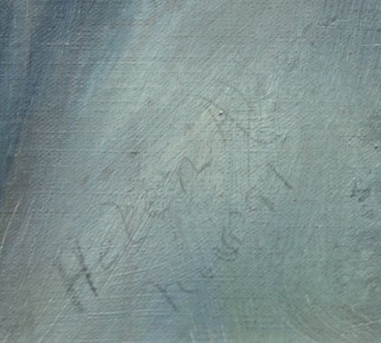 ALLEN, Helen, (American, 19/20th C): Portrait of Moses, Oil/Canvas, 23 1/2'' x 16'', signed, encased in later wooden frame, 29'' x 23''. Helen Allen was a relative of EA Hunt.