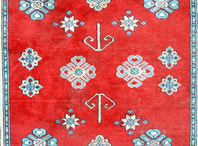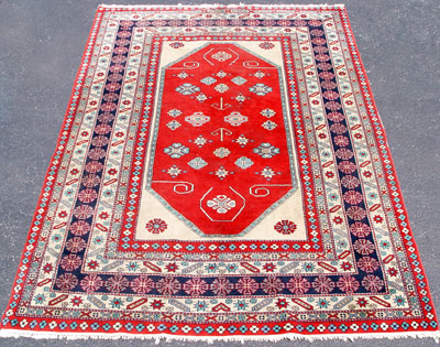 ORIENTAL CARPET: Red ground with multiple borders. Approx. 6'3'' x 8'6''