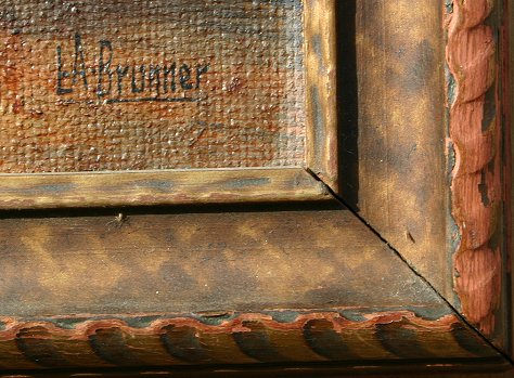 BRUNNER, Lawrence A., (American, 1883-): Redwood Forest, Oil/Masonite, 16'' x 12'', signed, period gilded frame with wear, 19'' x 15''. Needs cleaning.