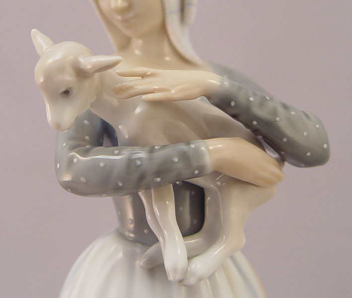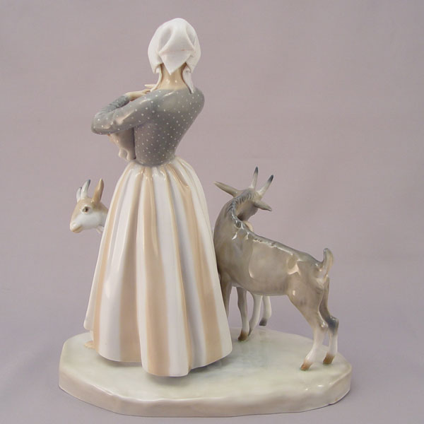 LLADRO PORCELAIN FIGURE ''SHEPHERDESS WITH GOATS'': #1001, 10.5'' tall. Retired in 1987.