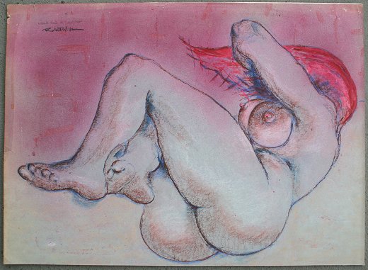 WILLSON, Robert, (American, 20th C): ''A Great Deal of Laughter'', Reclining Nude, Pastel, sight size 20'' x 28'', signed and titled, framed, 22'' x 30''. Several scattered scraps throughout.