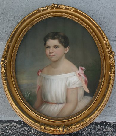 PASTEL PORTRAIT OF YOUNG GIRL, CIRCA 1920: 24'' x 19 1/2'', encased in gilded and carved molding, 30'' x 25''.