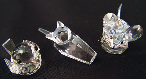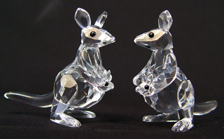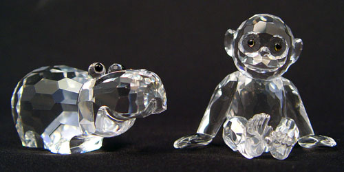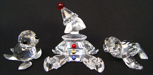 12 PIECE LOT SWAROVSKI CRYSTAL ANIMALS, CLOWN: To include 2 Mother Kangaroos (2 1/4'' high), squirrel (2'' high), clown (1 7/8'' high), hippo (1 1/4'' high x 2 1/2'' long), porcupine (1 1/8'' high), monkey (2'' high), 2 seals (1 1/4'' high, 7/8'' high x 2'' long), mouse (1 1/4'' high), bird (1'' high), and cat (2 1/4'' high). Squirrel, kangaroos, clown and monkey have original boxes.