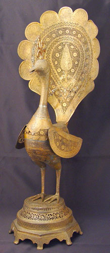 PERSIAN PIERCED METAL MODEL OF A PEACOCK: 26 1/2'' high. Lehner estate.