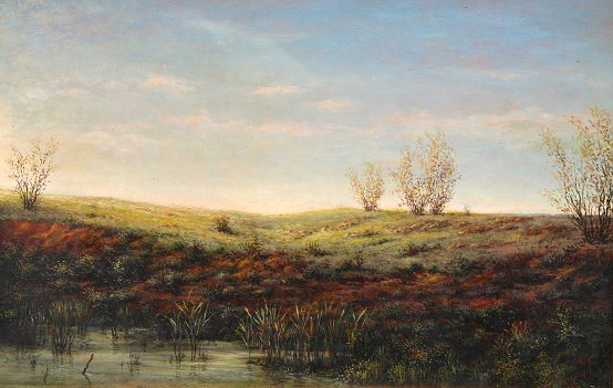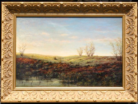 OIL/MASONITE AUTUMNAL LANDSCAPE SIGHED KRUPA: 15 3/4'' x 23 1/2'', signed, gold framing, 21'' x 29 1/4''.