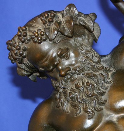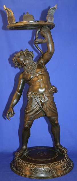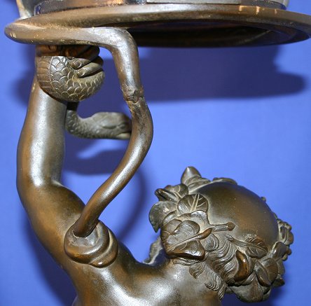 POLLICE, Giuseppe, (Italian, 1833-?): Bacchus Battling a Serpent, Bronze Sculpture converted to a plant holder/pedestal, 24''h., repair to snake with missing length, signed on base.