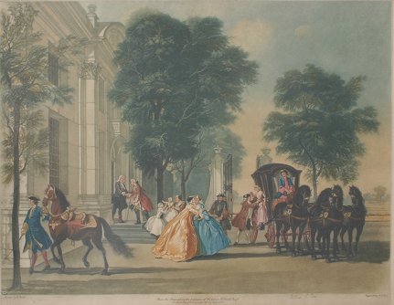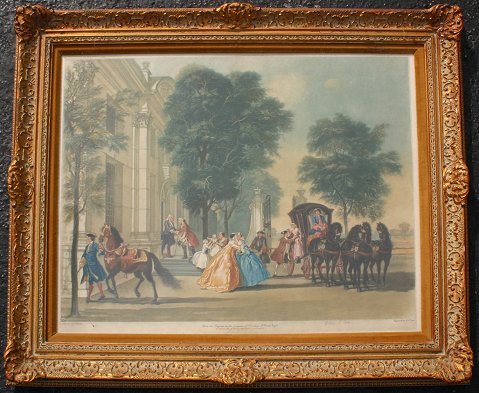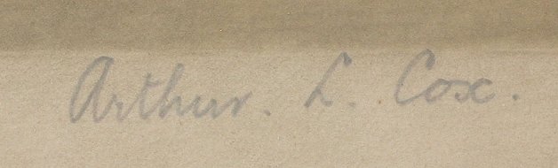 COX, Arthur, (British, 1879-): Guest Arriving at the Party, Mezzotint, sight size 21'' x 28'', pencil signed, embossed gilt frame with wear, 28'' x 36''.