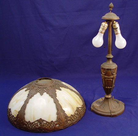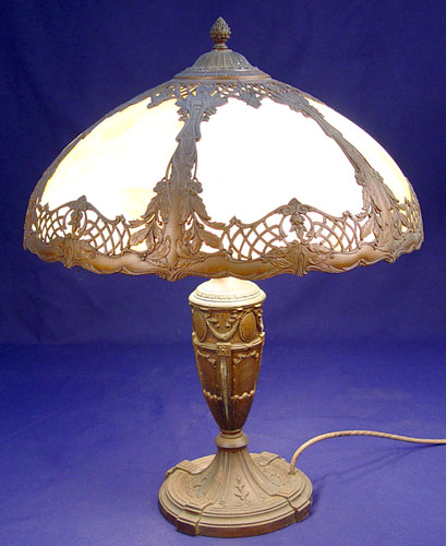 VINTAGE SLAG GLASS TABLE LAMP: 6 panel dome shade, the lamp is 24'' high, the shade 18 1/4'' dia.