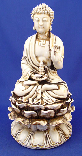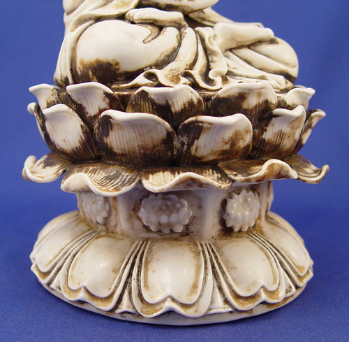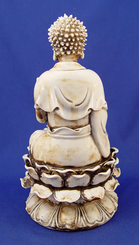 CHINESE CERAMIC BUDDHA FIGURE: Buddha on a lotus, 12 1/2'' high, unsigned.