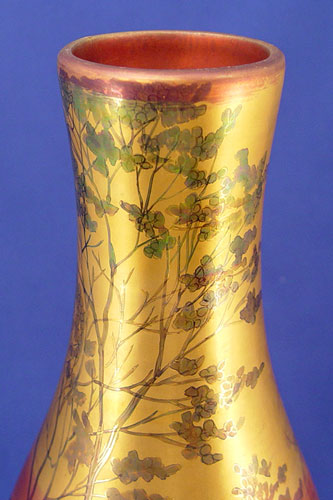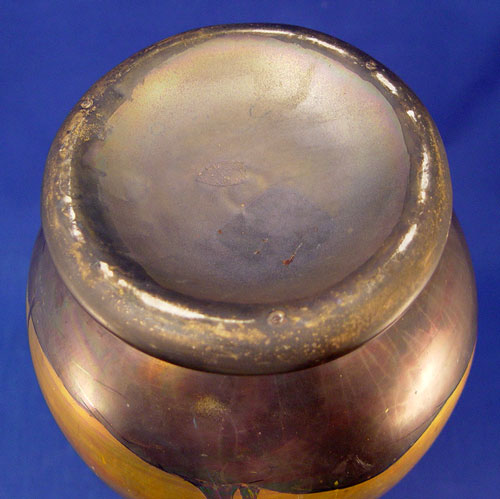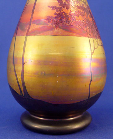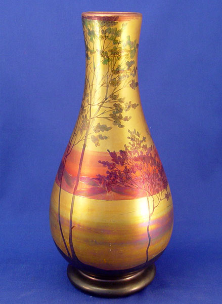 WELLER LASA IRIDESCENT ART POTTERY VASE: Landscape with tree design. 14 1/2'' signed ''Weller LaSa''