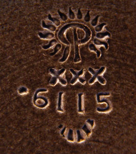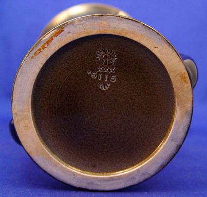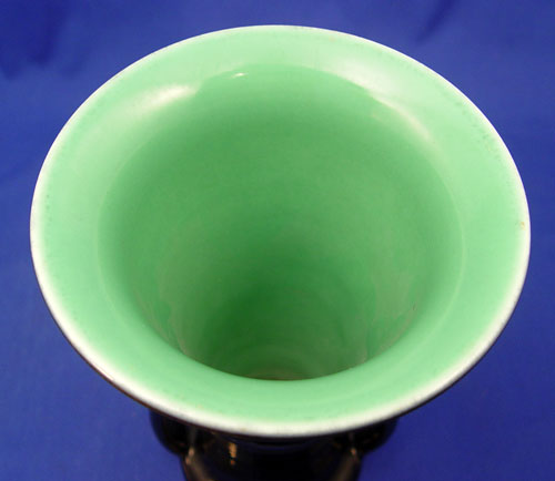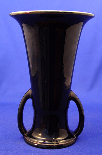 ROOKWOOD POTTERY DOUBLE HANDLE VASE #6115: Dated 1930, black gloss, green interior, 10'' high, shape 6115.