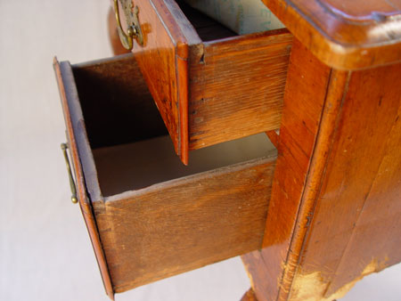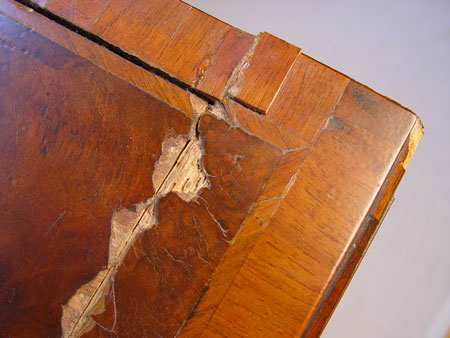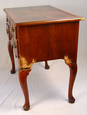 PERIOD QUEEN ANNE LOW BOY CHEST: In need of restoration. 28 1/2'' high x 29 1/2'' across x 18 3/4'' deep.