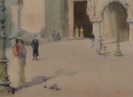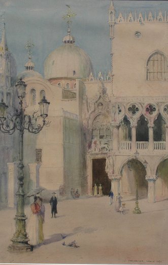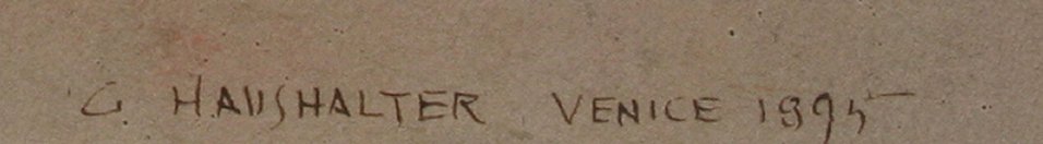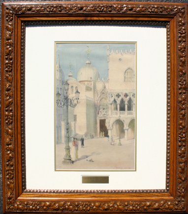 HAUSHALTER, George, (American, 1862-1943): ''Gate of Ducal Palace - Venice, 1895'', W/C, sight size 17 3/4'' x 11 1/2'', signed, titled and dated, encased in carved leaf and floral motif frame, 30'' x 28''.