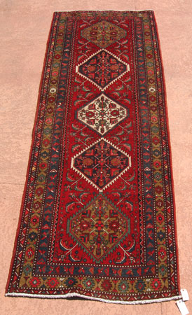 PERSIAN KARAJEH CARPET RUNNER: Approx. 4' x 11' long, deep red ground. Est. $500/700**