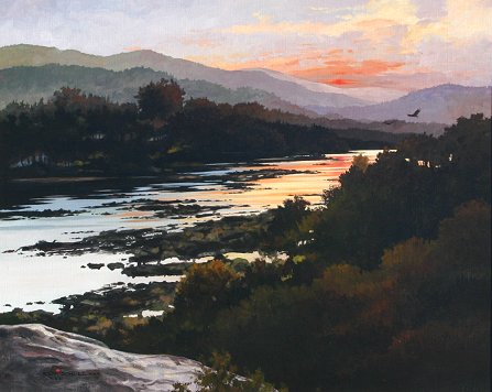 SCHULZ, Ken, (American, 1920-2006): ''Sundown on the Little Tennessee'', Oil/C, 24'' x 30'', signed and dated 81, original artist label verso, original frame, 30'' x 36''.