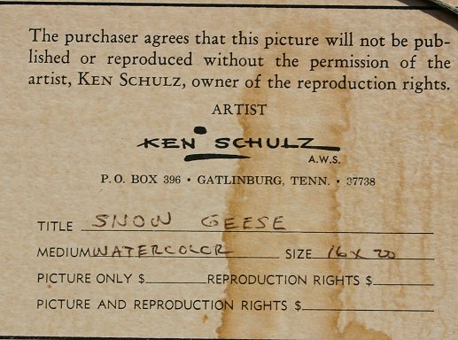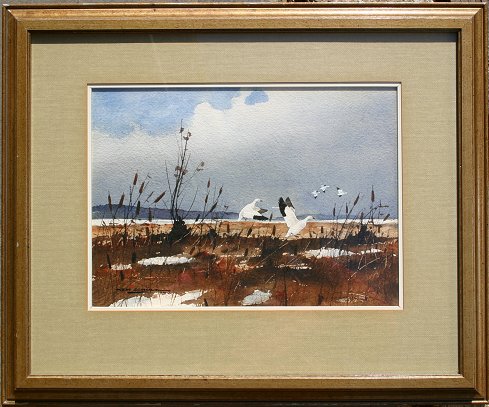 SCHULZ, Ken, (American, 1920-2006): ''Snow Geese'', W/C, sight size 10'' x 14'', signed, encased in original frame, 18 1/2'' x 22 1/2'', artist original label affixed verso. Est. $300/500**